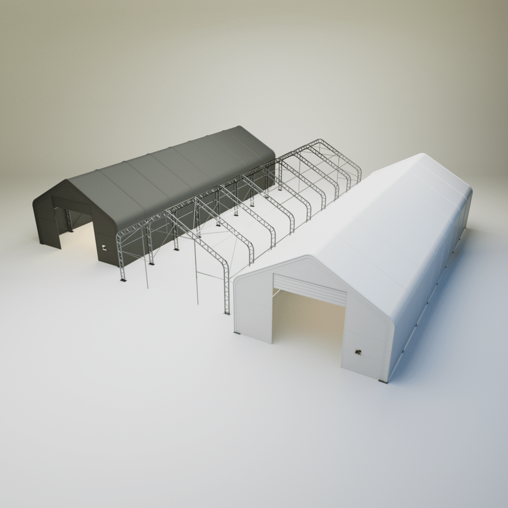 Táto sedlová hala je ideálna pre široké spektrum využitia. Svoje miesto si nájde v poľnohospodárstve – na uskladnenie sena, techniky, strojných zariadení či ako prístrešok pre zvieratá. V priemyselných a logistických prevádzkach poslúži ako skladový priestor, dielňa alebo dočasná výrobná zóna.