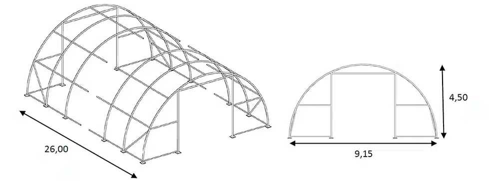 Táto oblúková hala je navrhnutá s dôrazom na jednoduchosť, ale bez toho, aby stratila čokoľvek zo svojej konštrukčnej stability. Oválny tvar konštrukcie napomáha rovnomernému rozloženiu tlaku, čo je výhodné najmä v oblastiach s častým snežením alebo pri silných vetroch.